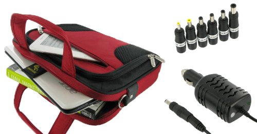 rooCASE 2n1 Acer AO532h-2067 10.1-Inch Matrix Silver Netbook Carrying Case and AC 12v Car Charger - Red Deluxe Bag Specification